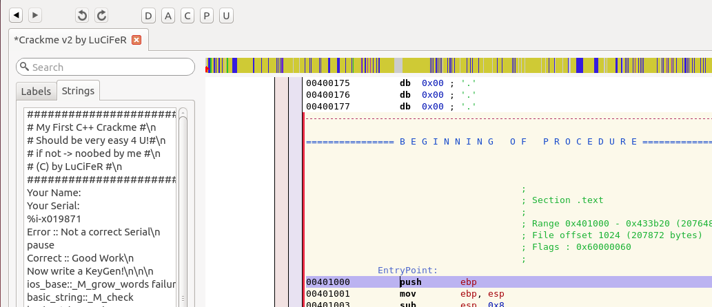 There’s a few ways to solve this issue, but the way I like to do it is by looking at the program’s strings. To do this, click on the button on the upper left next to the Labels
